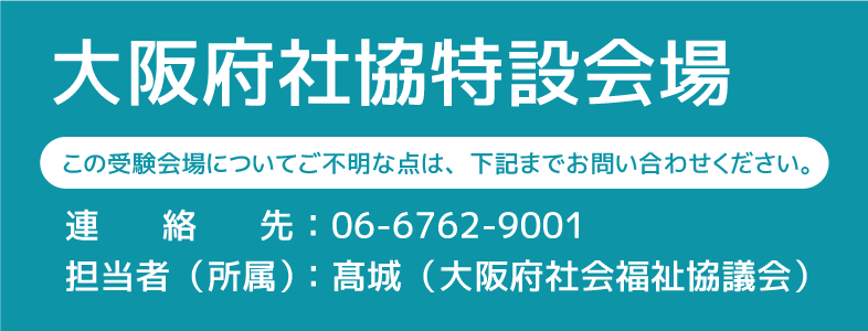この受験会場についてご不明な点は、大阪府社会福祉協議会(担当:高城,06-6762-9001)までお問い合わせください。